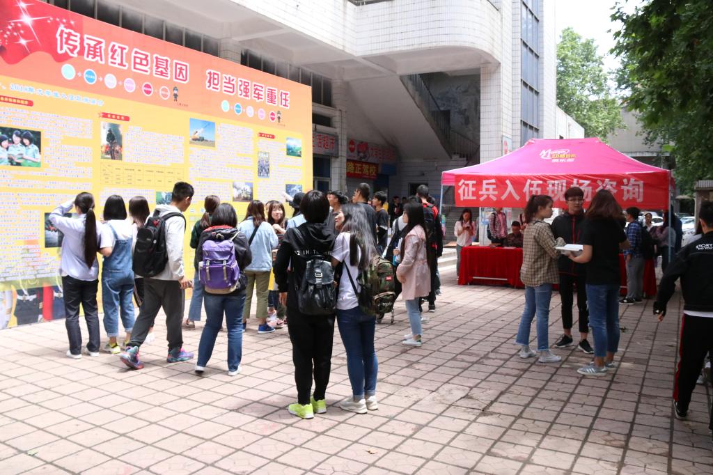 5月10、11日,学生工作部(处)在沣惠校区学生食堂前组织开展了“应征入伍现场咨询”活动,发放入伍政策程序宣传单,为学生答疑解惑。