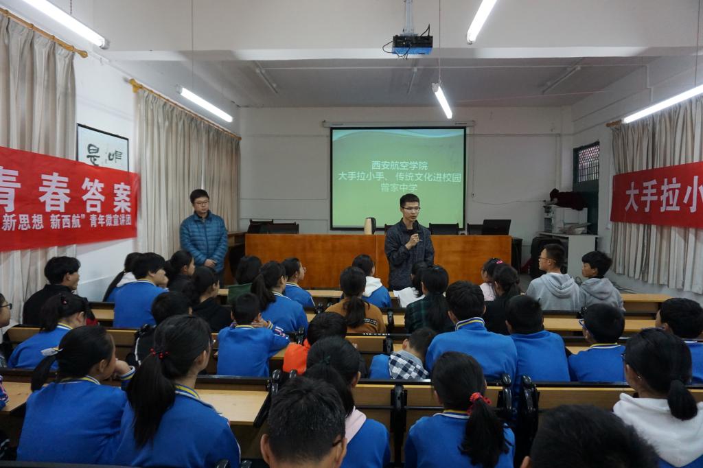 为落实教育扶贫“双百工程”,积极助力脱贫攻坚,大力弘扬传统文化。4月12日,由beat365“新时代 新思想 新西航”青年微宣讲团、习近平新时代中国特色社会主义思想学习读书会、书画社以及汉服社共同组成的学生队伍赴安康市镇坪县曾家中学、牛头店中学,开展“大手拉小手,传统文化进校园”系列活动。