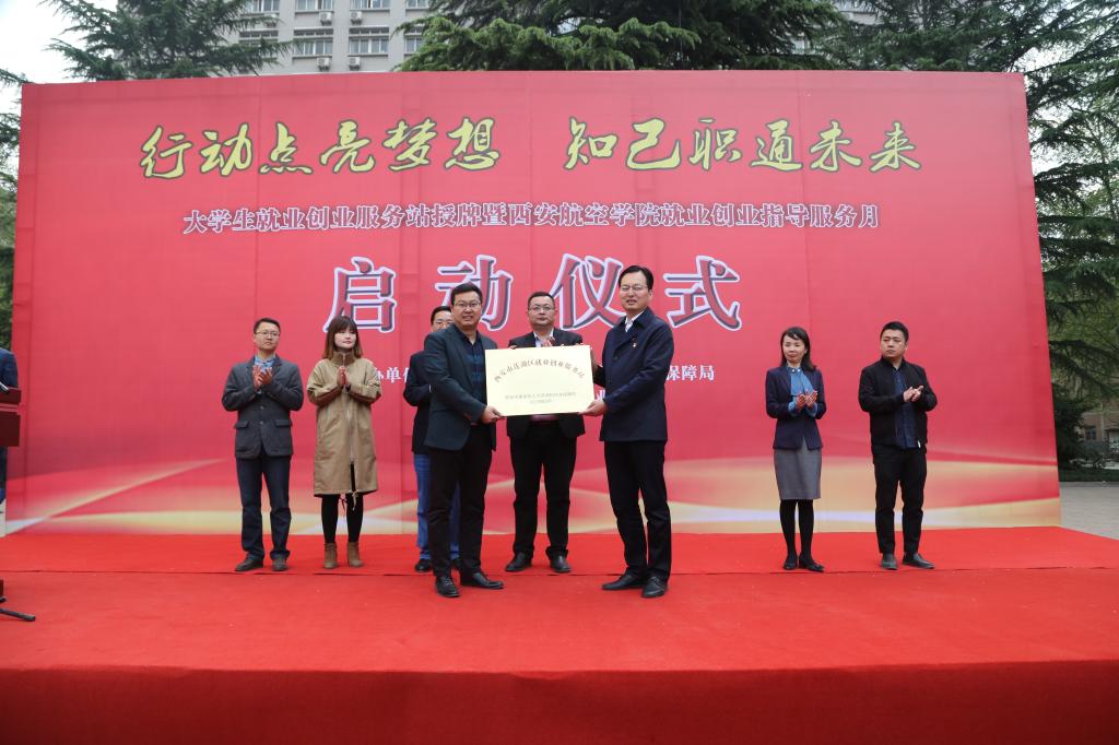 武福亮向学校授西安市莲湖区就业创业服务站牌