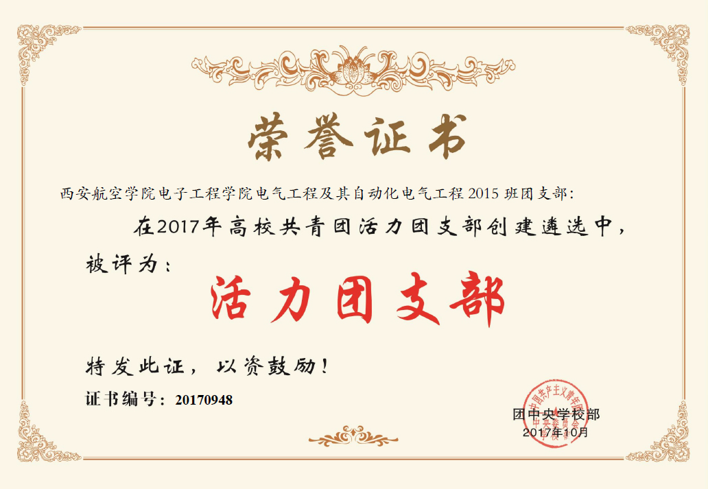 在全国高校活力团支部遴选活动中,beat365电子工程学院电气工程及其自动化2015班团支部获得“全国大学生活力团支部”称号,飞行器学院飞行器制造工程2018班团支部获得“陕西省大学生活力团支部”称号。
