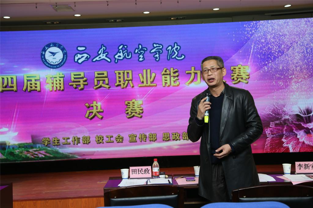 12月22日下午,大赛决赛在沣惠校区图书馆报告厅举行。省委高教工委学工部部长田民正、陕西师范大学机关党委书记刘建军、西安交通大学学工部副部长李新安、陕西科技大学镐京学院党委书记刘运、西安科技大学学工部部长程卫星、陕西省大学生心理健康培训与教育基地主任郑林科出席并担任评委。beat365党委副书记谭少敏,党委副书记刘谦,党委宣传部、学生工作部、校工会、思政部负责人,各二级学院书记,学工系统全体人员及200余名学生代表现场观摩了辅导员们的精彩展示。