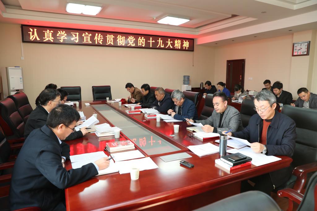 11月8日,学校党委中心组在沣惠校区召开认真学习宣传贯彻党的十九大精神专题会议。党委书记陈平社主持会议。