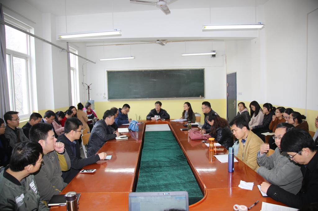 张化丽传达了寒假中干会议精神,要求全体教师要响应学校号召,积极申报自然科学基金,不断加强本科标准建设、教材建设、教学平台与科研平台建设。