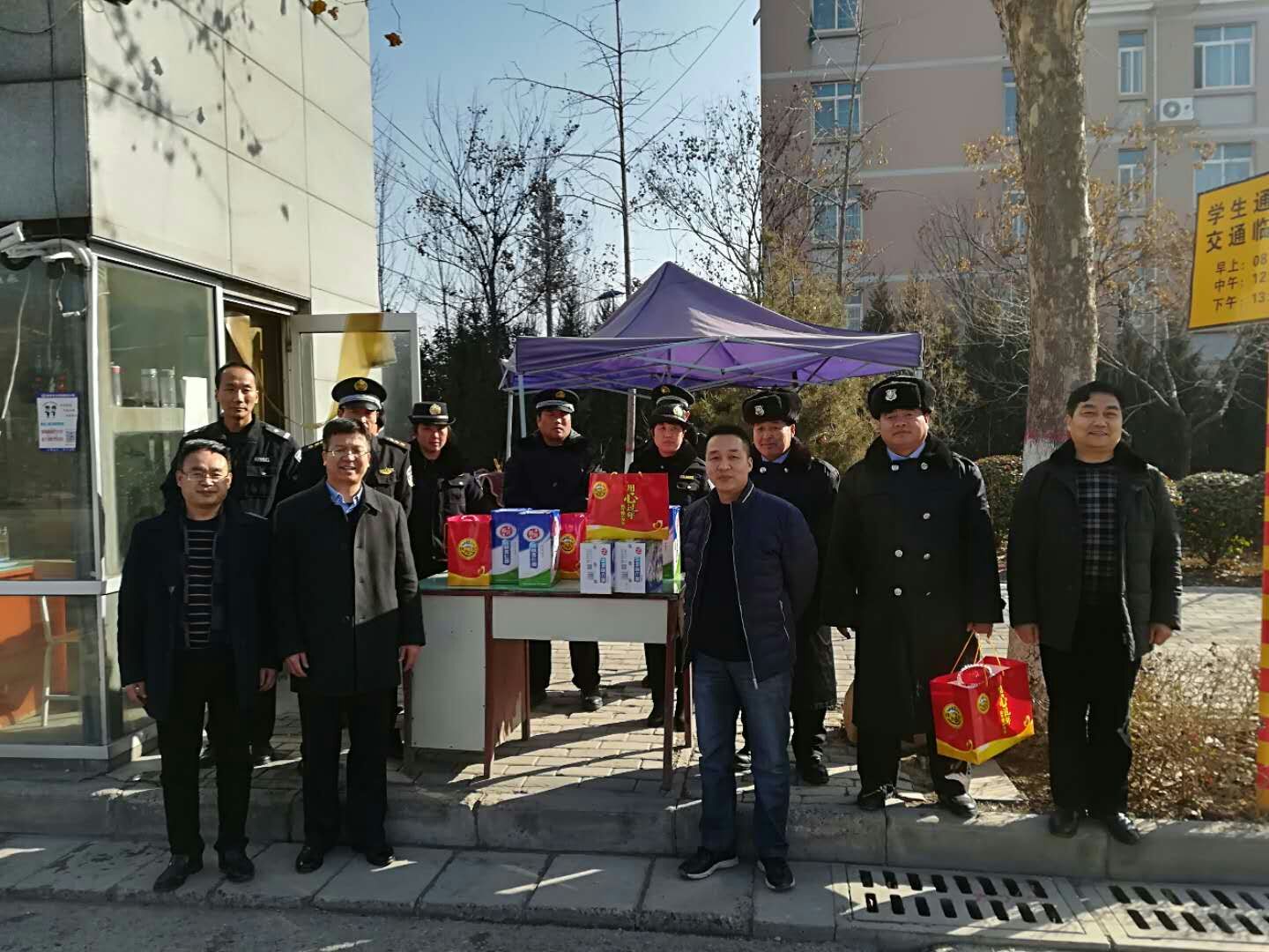 校领导一行先后到保卫处、动力中心、公寓楼、卫生所、车队等各值班点,与坚守在工作岗位的值班人员一一握手问好,对大家的辛勤工作表示真挚感谢,并送上慰问品,祝愿大家新春快乐。
