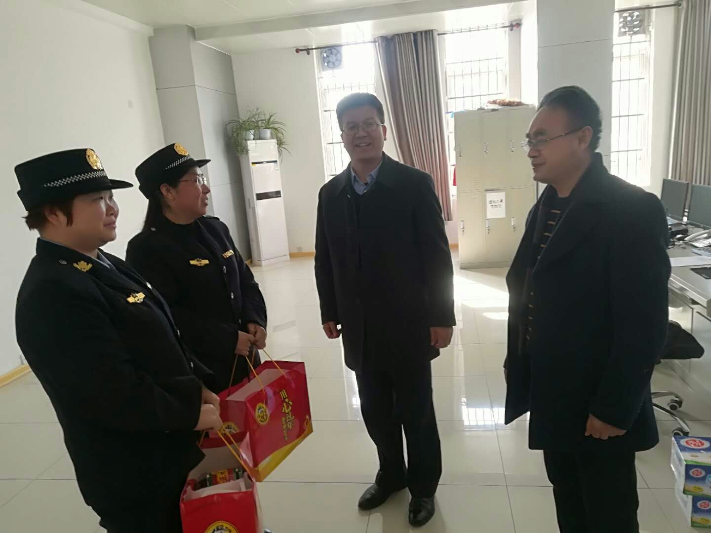 2月12日,在新春佳节来临之际,学校党委副书记谭少敏,副校长宁永录,工会主席罗增强及相关职能部门负责人分别带队,前往沣惠、阎良校区看望慰问beat365春节在岗值班的教职员工,并送上节日的祝福和新春的问候。