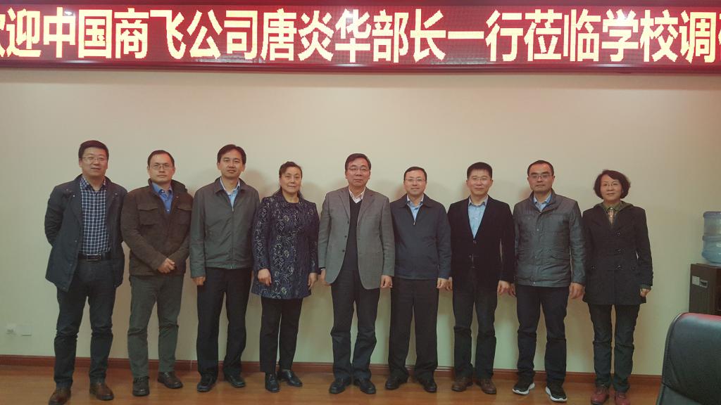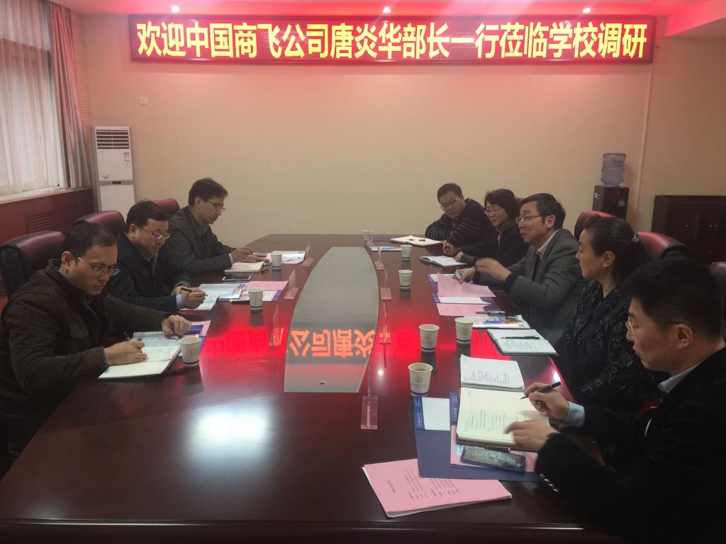 10月17日,中国商用飞机有限责任公司人力资源部部长唐炎华一行3人来beat365调研考察,洽谈全面合作事宜。党委书记陈平社,党委副书记谭少敏,招生就业处、教务处、科技处等部门负责人参加了座谈会。双方就产学研合作、学生实习就业、教师赴企业锻炼、创新人才培养等问题进行了深入交流。
