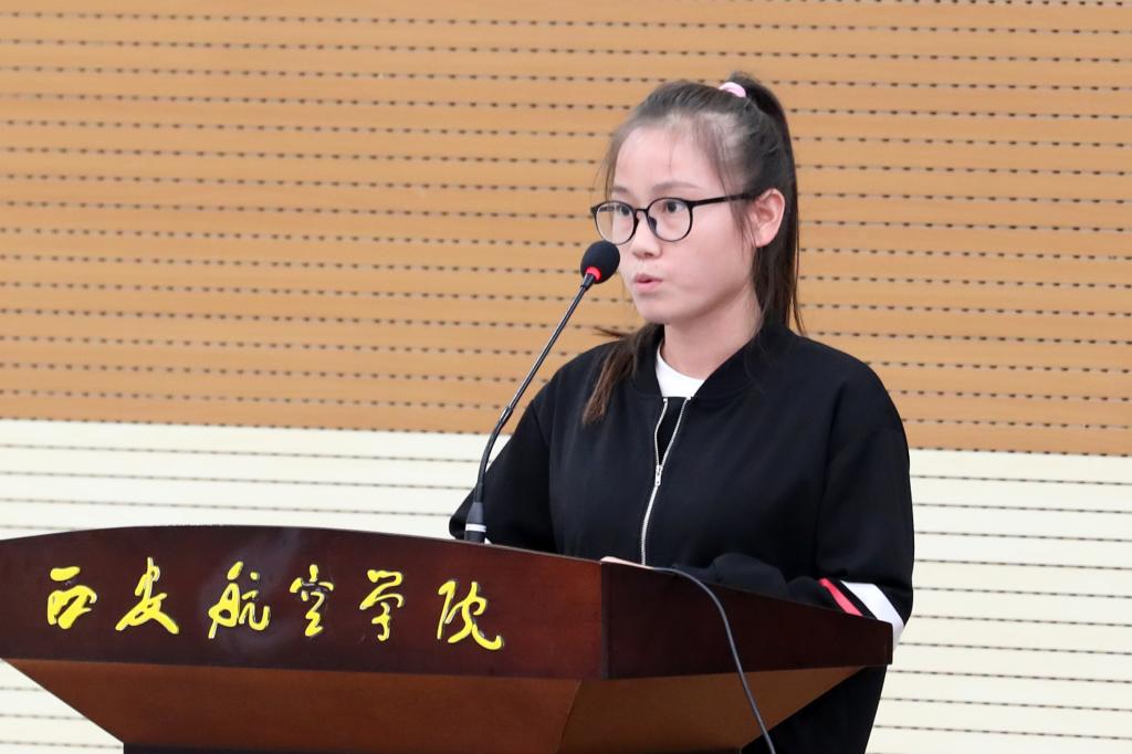 获奖学生代表惠晶同学做“适应性学习”主题发言,希望同学们在适合的时间学习、在适合的时间休息,学好专业知识,端正态度、扩宽知识面,不轻言放弃,一步步提升自己。