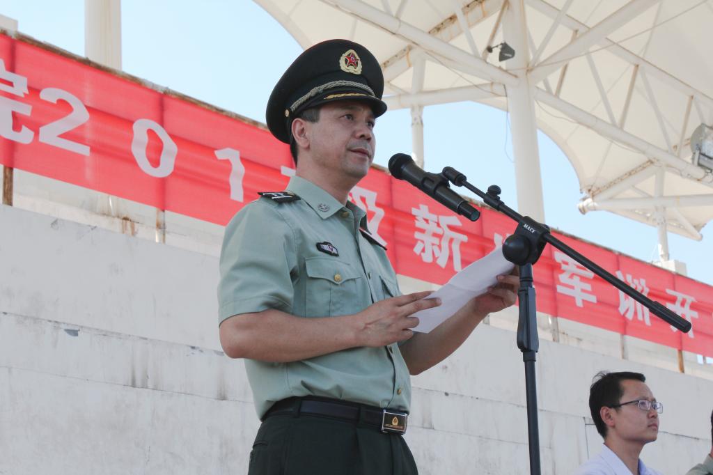 谭少敏代表学校党政和全体教职员工在沣惠校区开训仪式上向全体新生表示热烈欢迎,向承训团领导、教官表示诚挚的感谢,向全体参训干部、教师及相关工作人员表示亲切的慰问。谭少敏指出,“国无防不立,民无兵不安”,在中国人民解放军建军90周年之际,国际形势对国防力量提出了更严峻的考验。大学生进行军事训练,是国防力量的重要组成部分,是培养学生爱国主义、集体主义、革命英雄主义精神的基本形式。她对全体参训师生和教官提出了四点希望和要求:一是端正态度、刻苦训练。要及时适应环境,把军训当做磨砺自身意志的机遇,学习军人的作风和精神,自觉投入到军训当中。二是尊重教官、听从指挥。教官是我们的老师,更是我们的朋友,参训师生既要给予教官尊重,又要与教官和谐相处,多沟通、多交流,相互理解和支持,争取在有限时间内学到军人的优良传统。三是团结互助、共同提高。连队中要团结一致,训练中要相互协助,生活中要相互关心,最大化发挥集体力量,形成积极向上的训练氛围。四是确保安全、强化管理。全体参训人员必须牢固树立安全第一的思想,严格遵守军训管理规定,保障军训任务圆满完成。