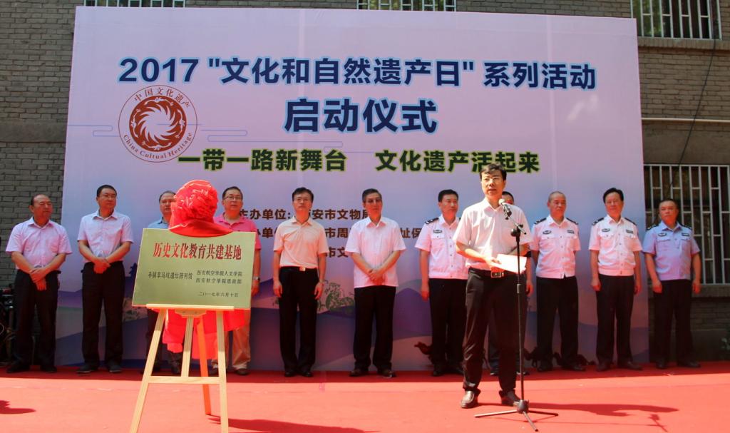 6月10日是我国首个“文化和自然遗产日”,由西安市文物局主办的2017“文化和自然遗产日”系列活动启动仪式在西安市周秦都城遗址保护管理中心隆重举行。陕西省公安厅文物侦查处、陕西省公安厅督察与安全处、西安市文物局、西安市公安局刑侦局与长安分局等有关部门负责同志,beat365党委副书记周建华,党委宣传部、思政部、人文学院等师生代表30余人出席此次活动。