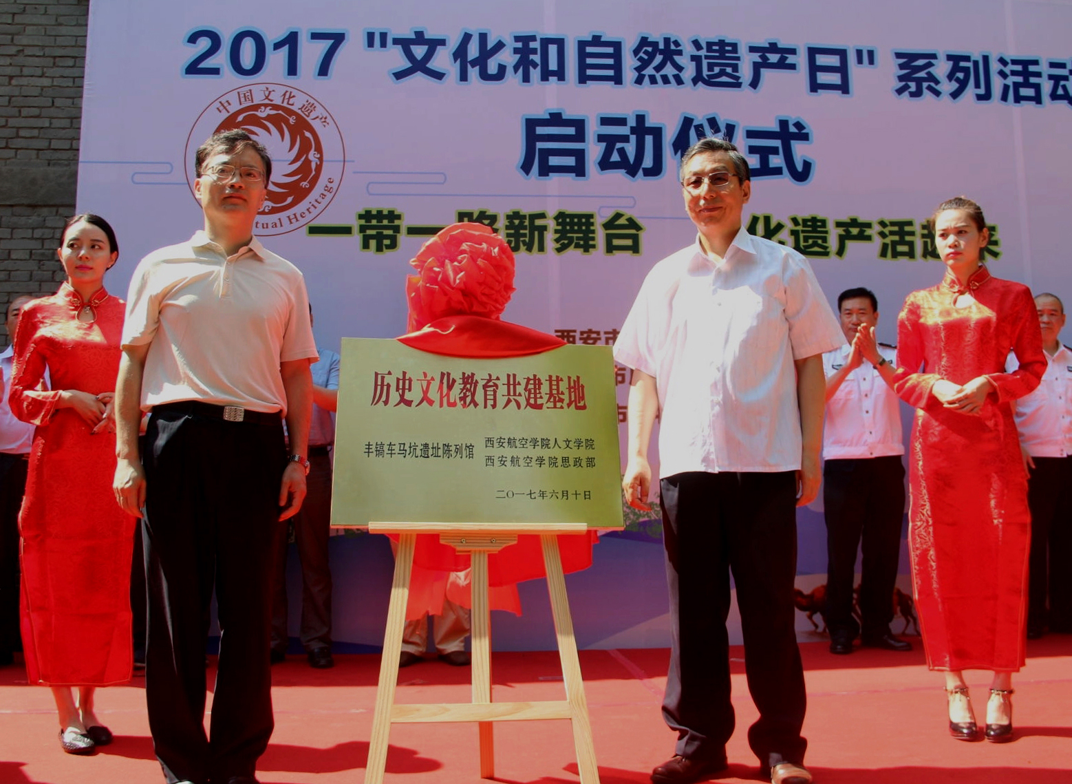 周建华与西安市文物局党委书记、局长郑育林共同为基地揭牌