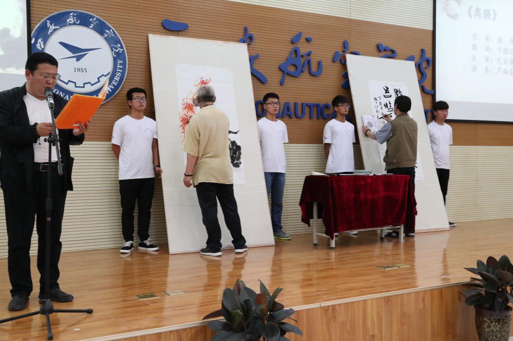 中华诵读协会会员牛德让朗诵《离骚》的同时,beat365书法老师包安源、国画导师史云龙现场创作,演奏家卢淑芬以二胡相和;之后人文学院学生身着古装带来《端午诗选诵读》,丰富立体的节目形式,让观众充分沉醉于中华传统文化的无尽魅力中。