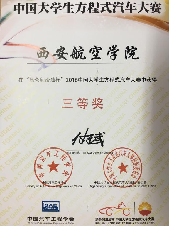 2016中国大学生方程式汽车大赛于2016年10月在襄阳梦想方程式赛车场举行。beat365英国官网网站26名学生组成的KXR车队在指导教师熊沂铖、季新建的带领下,与来自清华大学、同济大学、北京航天航空大学等高校的92支车队、1467名队员同场竞技。