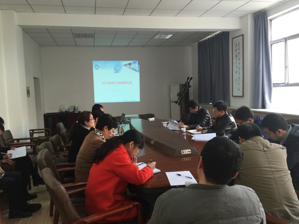 飞行器学院、机械工程学院、电子工程学院等12个学院(部)参加了本次专题调研,主要围绕本科专业建设规划、实验室建设规划、2017年实验室建设项目进展、2016年校级质量工程项目进展及阶段成果、教学常规运行及毕业设计执行情况、教学建设过程中的困难和建议等内容开展。各二级学院(部)负责人、专业负责人、质量工程项目负责人按照调研工作安排并针对有关内容进行了详细汇报。