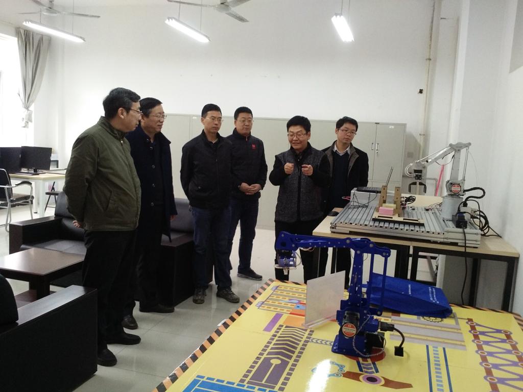 张广良随后向校领导汇报了中国航空综合技术研究所共建“飞机零组件制造工艺技术标验证联合实验室”、广州瑞松北斗汽车装备有限公司机器人应用研发中心项目、陕西杰创科技公司“扭矩检测技术研究中心”的合作进展情况,参观了力学实验中心,数字化设计与制造中心、计算机辅助测量中心、机械制造综合实验室等一年来的建设成果,并到“工匠坊”制作间观摩了学生自主设计、自主试制的作品和指导技师的工作情况。