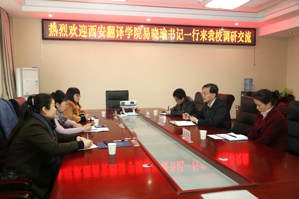 易晓瑜介绍了西安翻译学院的机制体制、西安翻译学院创建历程,以及民办院校的纪检工作情况。双方深入探讨了学校纪委应该如何落实廉政风险点防控、干部监督、微信平台信息建设和制度建设等方面的问题,交流了经验和做法。双方均表示,在今后的纪检监察工作中要互相学习、加强交流,不断推进学校的党风廉政建设及反腐败工作。(文/纪委办 高均立)