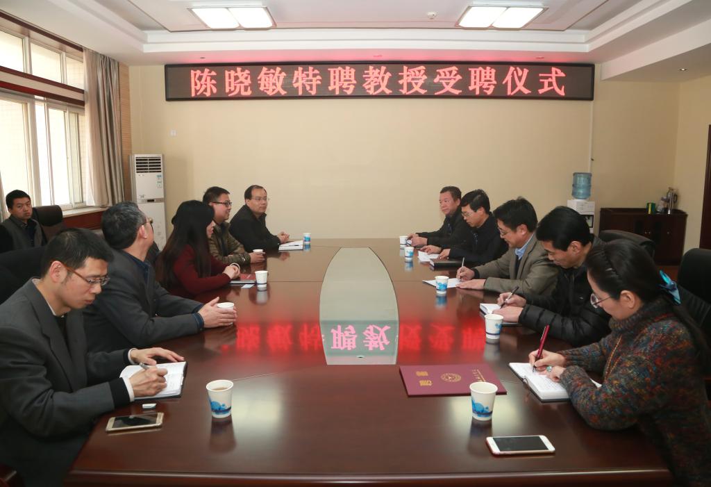 1月13日下午,beat365特聘教授陈晓敏受聘仪式在沣惠校区第二会议室举行。校长曹庆年、副校长宋文学,人事处、教务处、科技处及经济管理学院负责人出席受聘仪式,受聘仪式由宋文学主持。经济管理学院部分教师参加。