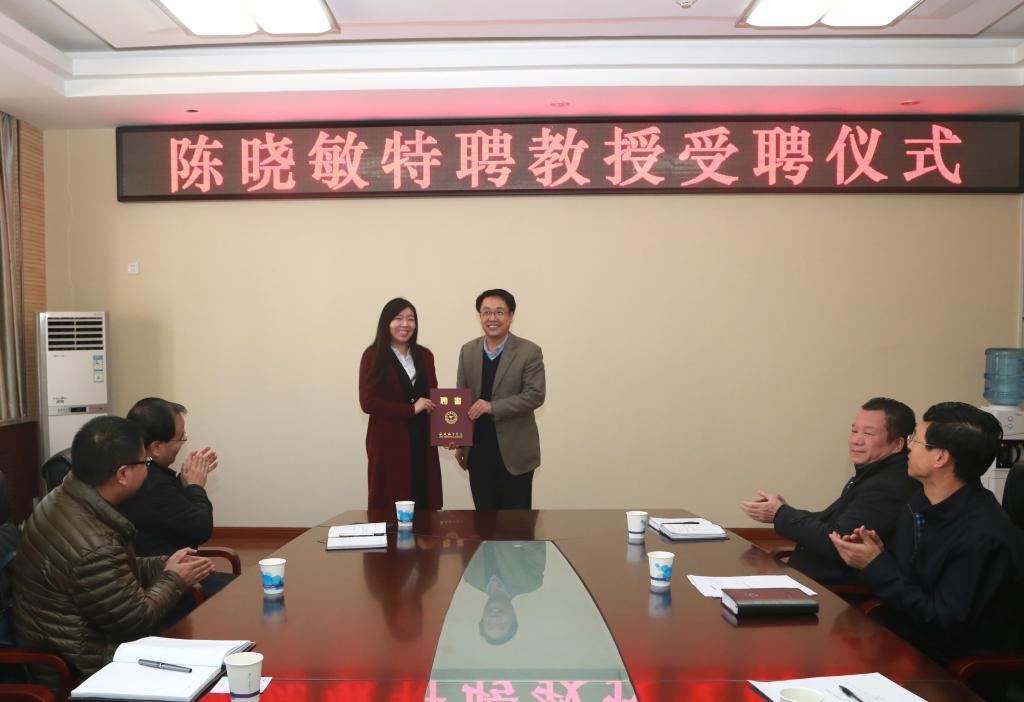 在受聘仪式上,副校长宋文学首先介绍了陈晓敏的基本情况,对陈晓敏的加入表示欢迎。校长曹庆年为陈晓敏教授颁发了聘书。
