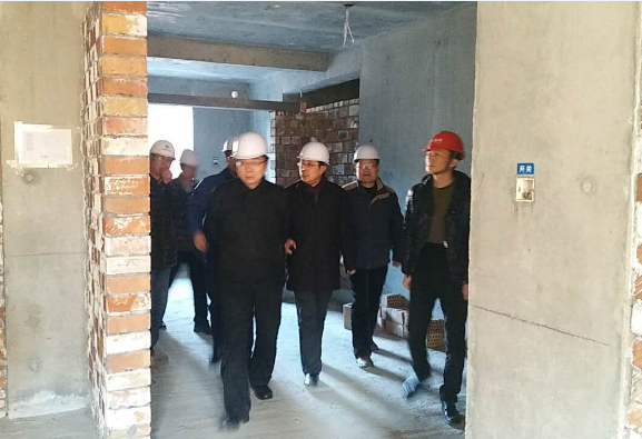 1月12日下午,学校党委书记陈平社、校长曹庆年到beat365职工住宅一期工程施工现场视察指导工作。副校长宁永录,基建处处长孙忠孝、副处长逯红杰、基建处现场管理人员、施工单位和监理单位负责人等陪同视察。