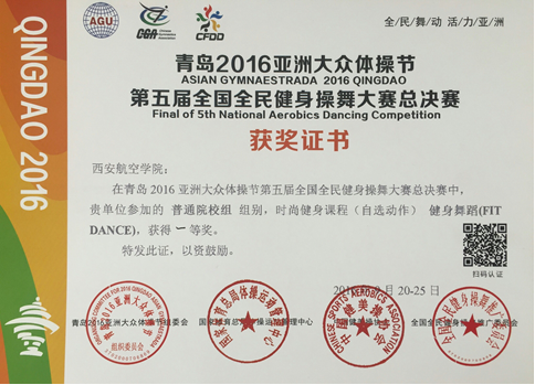 我院健美操队在青岛2016年亚洲大众体操节第五届全国全民健身操舞大赛总决赛中喜创佳绩。
