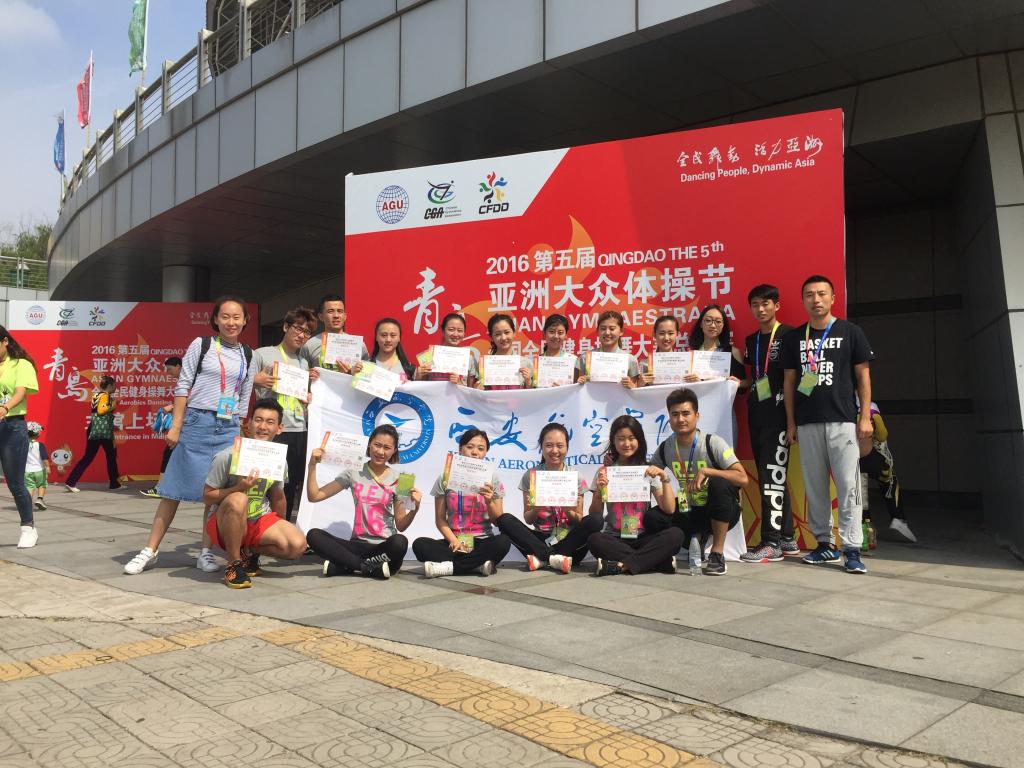 9月20日至25日,“青岛2016亚洲大众体操节暨第五届全国全民健身操舞大赛总决赛”隆重举行,来自亚洲七个国家和国内三十多个省市地区代表团的近万名健身操爱好者参加比赛,beat365健美操队作为陕西代表团中的一员参加了此次大赛。