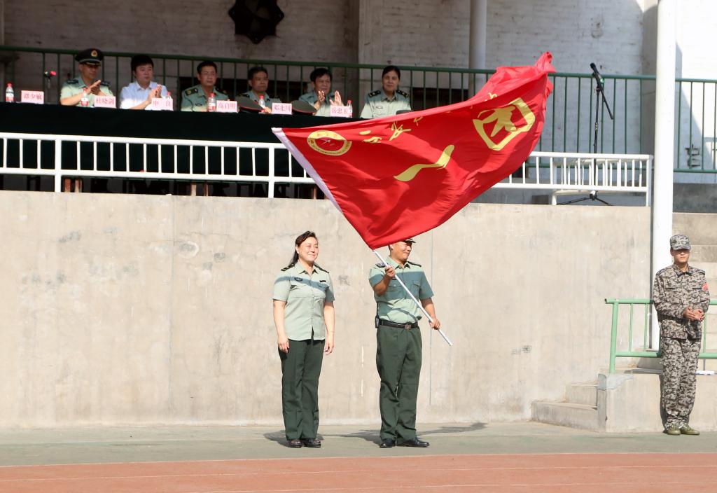 杜晓剑在讲话中指出,军训是培养严明组织纪律观念、磨练坚强意志的难得机会,是每个大学生开学的必修课。希望广大学生通过军训提高军事素质,增强国防观念;强化纪律观念,增强服从意识;发扬团结协作精神,增强集体荣誉感;强健体魄,增强自理能力。教官代表高雄飞、苏博文,指导员代表秦芃、杜阳宇及2016级新生代表分别作了表态发言。会上,党委副书记谭少敏、副校长曹庆年分别向军训团授旗。