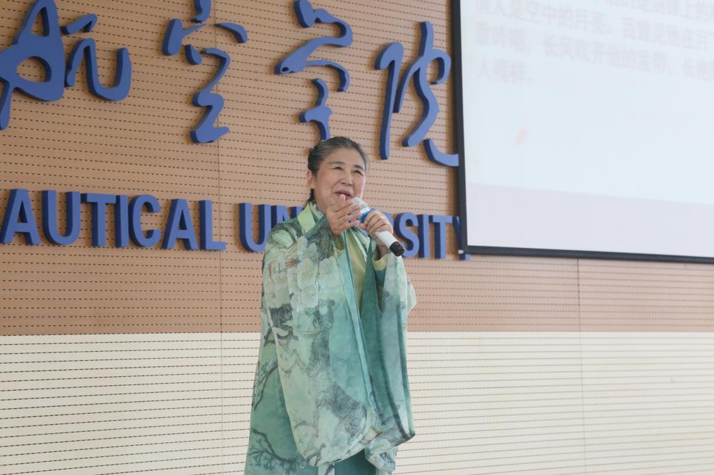 第二篇章中,舞蹈《击鼓》让观众沉浸到了仗剑走天涯、娇娥不让须眉的境界中,西航学子《“古往今来”组诗》引领观众穿过历史文化的长廊漫步到了今天;曾在全国“夏青杯”朗诵大赛中获得成人组优秀奖的薛红老师,带来了《记得吗?你的祖先名叫炎黄》;青年朗诵艺术家,曾荣获中国关心下一代工作委员会、国家教育部、文化部共同主办的全国艺术人才选拔赛朗诵专业组银奖多才多艺的林静华老师,朗诵的高建群代表作《西地平线》,用语言的魅力为观众呈现了地平线美丽落日景观,现场为《白雪公主》片段的动画配音,更让同学们零距离感受到了她语言的魅力;学校青年教师米嘉琪带来《满江红》《念奴娇·赤壁怀古》,赢得了大家热情的掌声。