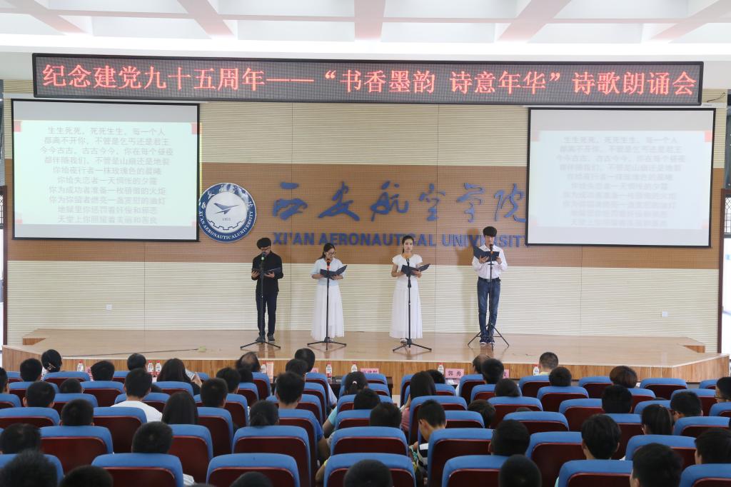 本次诗歌朗诵,笑迎八方客,诗结四海缘,以诗会友,以诗献礼,是陕西龙山书院和西航师生共同为大家献上的一场文化盛宴,也是我们为党95岁生日最虔诚的祝福。(文/人文学院 尹婷婷 李文杰 图/学生记者团 谢宝宝)