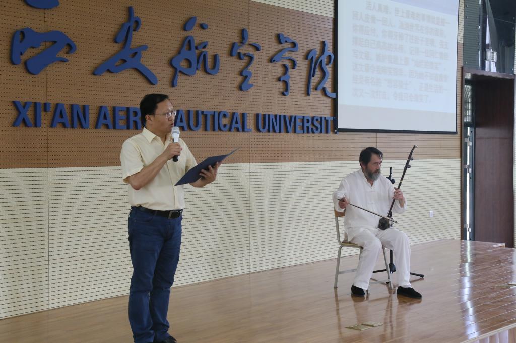 在第三篇章,被誉为“西北第一琴”的马权安老师不仅演奏了自己创作的二胡独奏《寻梦桃源》,更为张继励朗诵的《十二幅铠甲》配乐。而西航学子则用青春的声音,描绘了他们的校园生活。最后由beat365英国官网网站知名校友、作家、诗人张妥创作并与学生共同朗诵的《青春西航》,将整个现场推向了高潮,对母校昔日的怀念和感恩,对母校今天的热爱和希望,包含在了诗句的字里行间,充盈在了朗诵的声情抑扬中。“西航,你的根深扎在沣滈,西航,你的叶茂盛在阎良;你在沣滈吮吸着悠久的文化,你在阎良开启了对接现代的舷窗”“我呼来三十年四方的校友,赞一声,青春西航”唤起了现场观众的共鸣,在经久不息的掌声中,诗歌朗诵会落下帷幕。