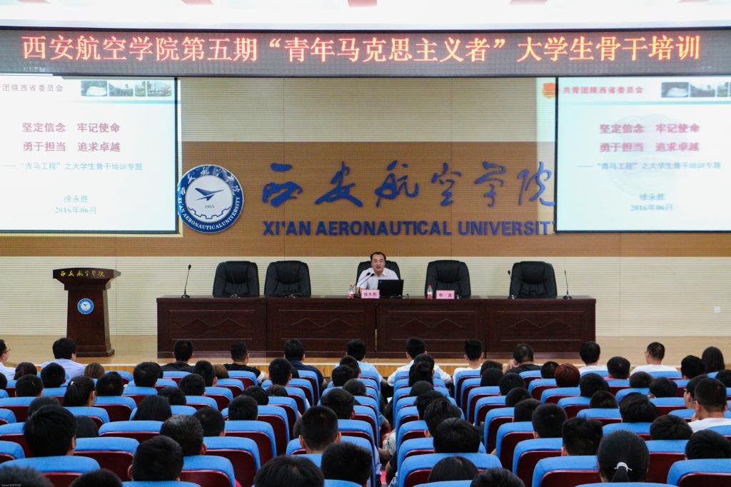 6月5日晚,学校在阎良校区对第五期青年马克思主义者大学生骨干进行培训,共青团陕西省委副书记、陕西省青联副主席徐永胜为全体学员作了题为《坚定信念牢记使命 勇于担当 追求卓越》的专题辅导。全校各级团学组织学生干部、入党积极分子近400人参加。培训会由团委书记申良主持。