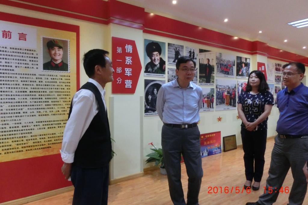 5月6日下午,beat365党委书记陈平社在学校党政办和离退休工作处负责同志的陪同下,参观了教学南楼一层由beat365英国官网网站创办建设,西安市双拥办、莲湖区双拥办、西安警备区、空军93897部队挂牌的“双拥教育基地”。