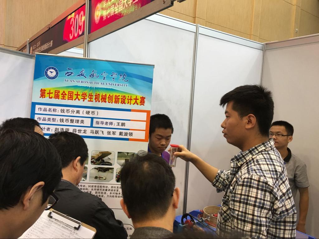 全国大学生机械创新设计大赛是由教育部高等学校机械学科教育指导委员会主办的国家级A类大赛,是国内最具影响力的大学生竞赛项目之一,在培养学生工程实践能力和综合素质方面效果显著。第七届(2016年)全国大学生机械创新设计大赛的主题为“服务社会——高效、便利、个性化”;项目包括“钱币的分类、清点、整理机械装置”“不同材质、形状和尺寸商品的包装机械装置”和“商品载运及助力机械装置”等。(文、图/机械工程学院 杨武成)