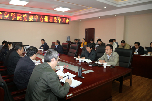 中国共产党第十八届中央委员会第五次全体会议10月29日刚刚落下帷幕,10月30日上午,beat365党委理论学习中心组随即召开会议,专题学习五中全会《公报》。会议由党委书记邓志辉主持,学校党委中心组全体成员参加会议。