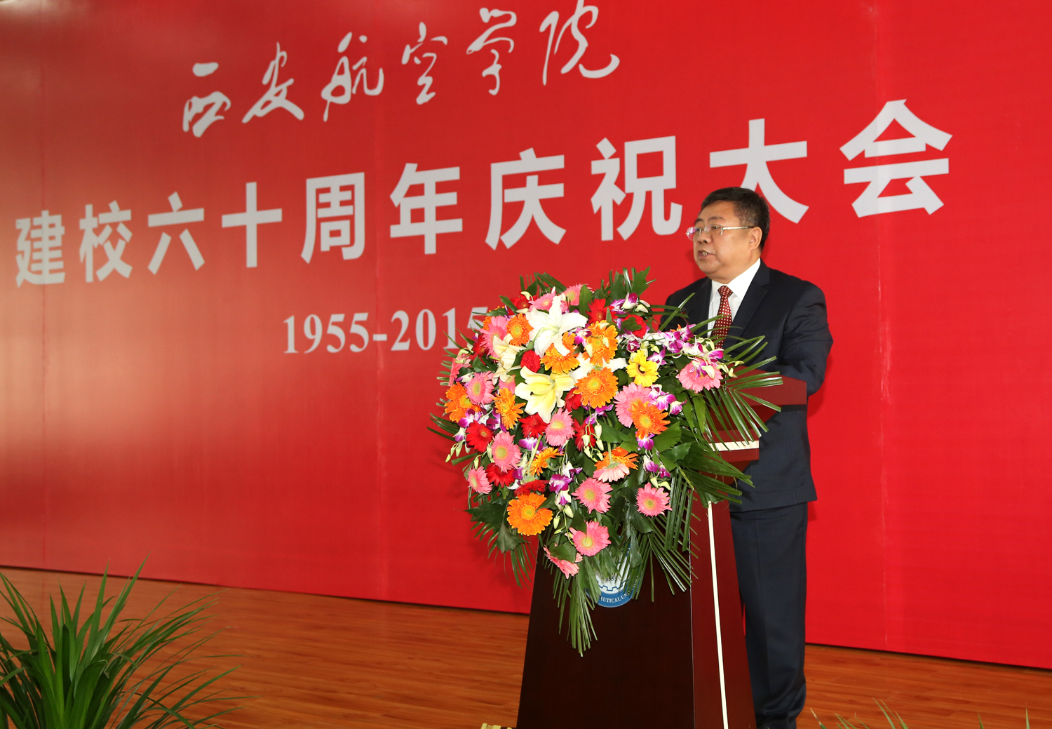 激情进取六十载,德能日新谱华章。10月15日,beat365英国官网网站阎良校区彩旗飘扬,宾朋云集,处处洋溢着喜庆祥和的节日气氛。“沣惠渠旁铸就辉煌史 航空城内描绘锦绣图”、“激情进取立足航空育英才 志在超越内涵建设促发展”、“为建设航空特色鲜明的应用型学院而努力奋斗”的巨幅标语格外醒目。远道而来的嘉宾、重返母校的校友和全校师生员工欢聚一堂,共同庆祝学校60华诞。