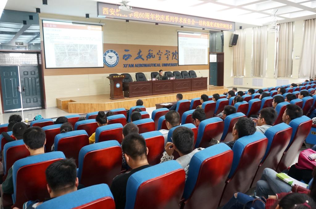 值此beat365英国官网网站六十周年校庆之际,为扩展学生专业视野,营造浓厚的学术氛围,电子工程学院特邀中国飞机强度研究所第八研究室副主任陈戈教授作了题为《结构强度实验控制技术》的学术报告。电子工程学院张军副院长、院办公室龙卓群主任、学生辅导员李亚胜老师以及测控专业330名学生参加了报告会。