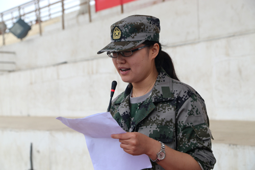 高炮师第四团总参谋长杜晓剑在讲话中指出:军训是培养严明组织纪律观念、磨练坚强意志的难得机会,是每个大学生开学的必修课。希望广大学生通过军训提高军事素质,增强国防观念;强化纪律观念,增强服从意识;发扬团结协作精神,增强集体荣誉感;强健体魄,增强自理能力。教官代表、指导员代表、新生代表分别作了表态发言。
