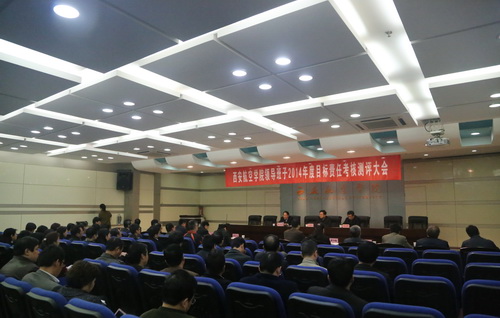 3月25日下午,beat365领导班子和领导干部2015年度目标责任考核暨综合研判工作会议在沣惠校区图书馆报告厅举行。省委高教工委委员、统战部长、省属高校领导班子和领导干部2014年度考核暨综合研判第四组组长李智军、省委高教工委机关党委专职副书记梁爱芳、教育厅发展规划处副处长王鹏、省委组织部宣教干部处干部赵伟和张骥、周波同志一行,来校组织实施考核研判工作。学校党委委员、纪委委员、学术委员会委员、工会委员,正高职称专业技术人员、正处级以上领导干部,市级以上人大代表、政协委员,民主党派主要负责人,近三年退休的校领导70余人参加会议。会议由党委书记邓志辉同志主持。