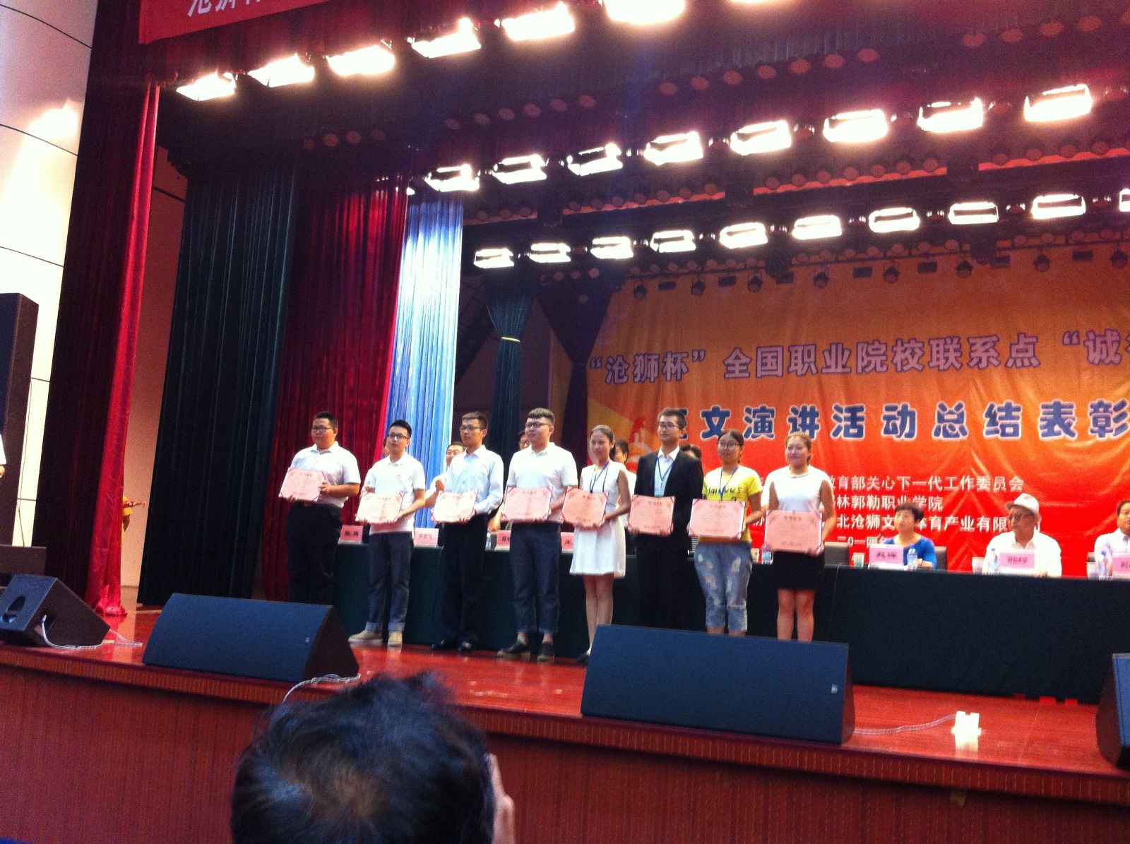 8月6日上午,由教育部关工委主办,内蒙古锡林郭勒职业学院承办的“沧狮杯”全国职业院校联系点“诚行天下”演讲总决赛在锡林浩特举行。我院两名选手代表陕西省参加比赛并获三等奖。