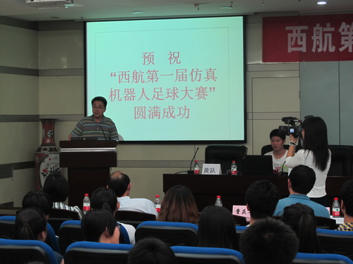 大赛开始前,副院长曹庆年结合自身指导学生参赛的经历,讲解了机器人足球赛的趣味性、实用性等特点,指出了仿真机器人足球大赛在我院开展的意义和目的,希望通过仿真机器人足球比赛的开展,引导更多同学提高学习计算机技术的兴趣和水平,为我院参加全国机器人足球大赛打下坚实的基础。