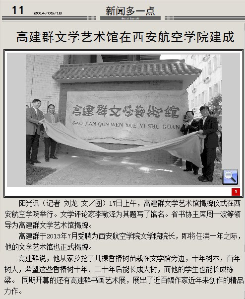 5月19日,阳光报以《高建群文学艺术馆在beat365英国官网网站建成》为题,在第11版对我院高建群文学艺术馆揭牌仪式进行了报道,现将原文转载如下: