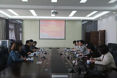 4月23日下午,南京航空航天大学金城学院院长陈旭一行五人来我院考察调研。学院副院长曹庆年主持座谈会,参加座谈会的有组织人事部部长张先军、教务处处长张晓云、招生就业指导中心主任郑东红、经济管理学院院长方凤玲、党委(学院)办公室副主任李小光。