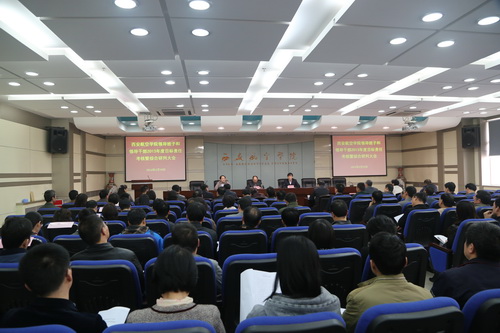 3月18日下午,我院在沣惠校区图书馆报告厅召开学院领导班子和领导干部2013年度目标责任考核暨综合研判工作大会。陕西省高等学校年度目标责任考核第一组组长、省委高教工委常务副书记董小龙,陕西省高等学校年度目标责任考核第一组组员,全体院领导、党委委员、纪委委员、学术委员会委员、工会委员,正高职称专业技术人员,副处级以上干部,学生代表90余人参加大会。大会由党委书记苗润才主持。