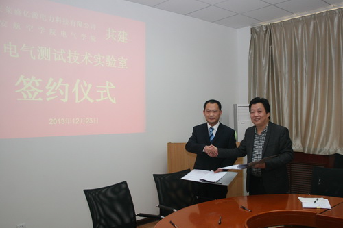 曹庆年对校企共建实验室表示祝贺,向西安莱盛亿源电力科技有限公司表示感谢。他指出,我院应用型本科人才的培养,要充分利用企业资源,和企业共同完成对人才的培养。电气学院的专业建设和公司的发展相吻合,电气测试技术实验室的建立,是开放办学、校企合作的一项成果,双方的合作是教育发展和企业创新实现优势互补、互动双赢的有益探索,既符合校企协同创新的教育改革方向,也为企业的发展提供了更好的科技支撑和人才支持。