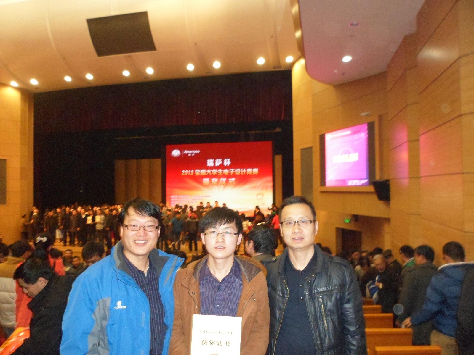 12月7日,2013年全国大学生电子设计竞赛总结暨颁奖大会在北京航空航天大学举行,我院入围决赛的代表队获全国一等奖。电气学院副院长张军、指导教师许刚和学生代表王磊参加大会。