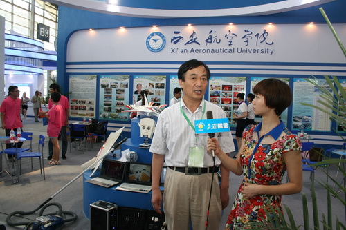 当天早上,陕西省副省长庄长兴、陕西省教育工委书记李仲为等领导到我院展区参观,现场听取了学院党委书记苗润才的简要汇报,对学院近年的建设发展给予充分肯定,勉励学院进一步凝炼航空办学特色,注重学生科技创新,加快本科院校建设步伐。之后,苗润才接受了陕西电视台新闻综合频道的现场采访。