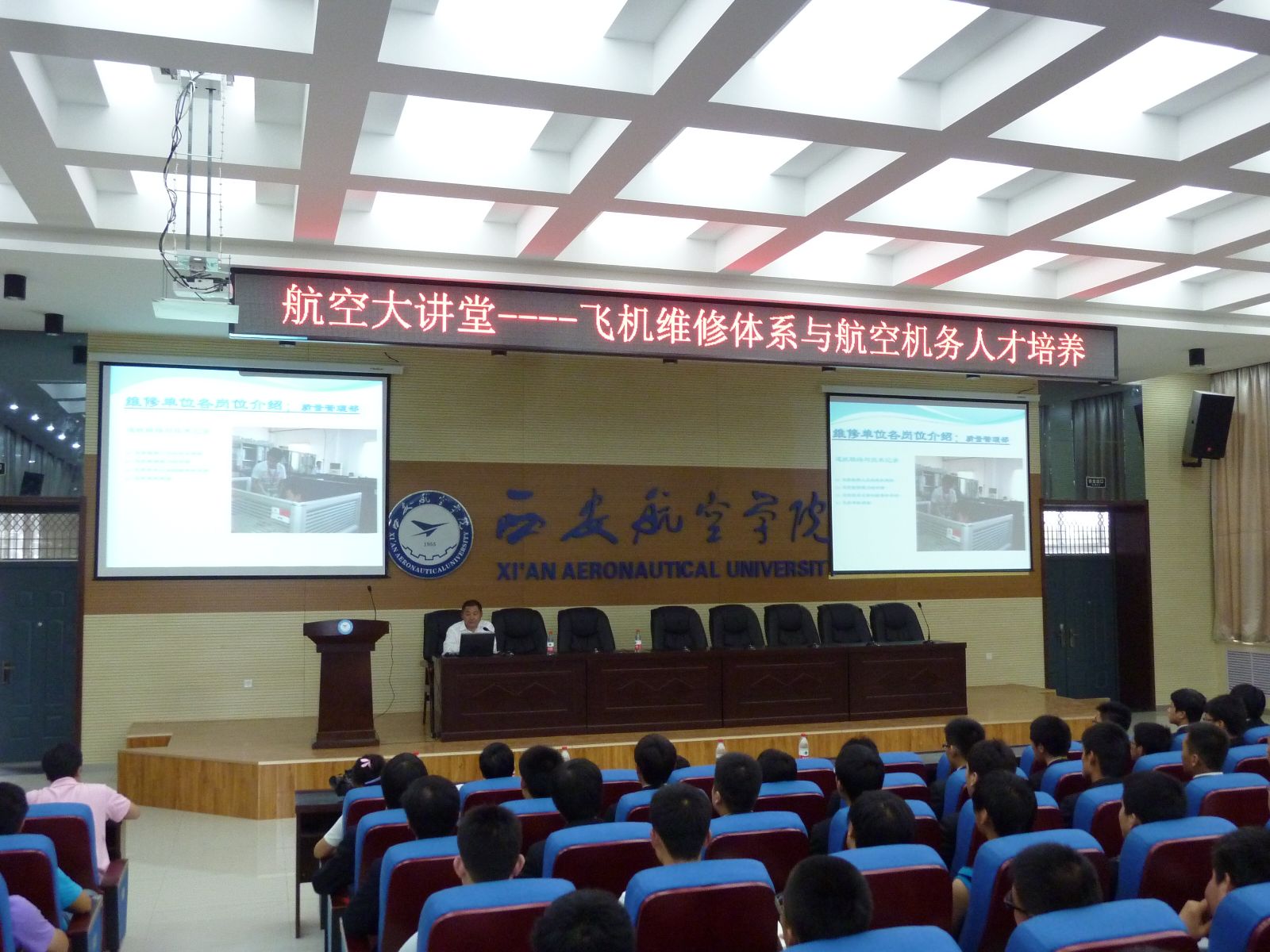 5月24日下午,由科技处和航空系共同举办的航空大讲堂“飞机维修体系与航空机务人才培养”在我院阎良校区学术报告厅举行,本次学术报告由海航航空技术有限公司西北维修基地总监周贵敏主讲,航空系主任宋文学、党总支书记张耀虎、航空机电设备维修专业负责人余斌高及航空系相关专业学生近400人聆听了学术报告,报告会由宋文学主持。