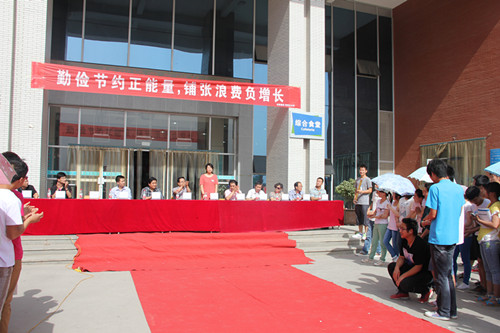 为弘扬中华民族艰苦朴素、勤俭节约的精神,积极响应习近平总书记关于“厉行勤俭节约、反对铺张浪费”的重要指示精神,5月20日,由我院后勤服务集团、学生处、院团委、各系(部)共同组织的“光盘行动”,在阎良校区食堂前正式启动。本次活动旨在号召全院师生加入“光盘族”,杜绝“舌尖上的浪费”,创建节约型和谐校园。