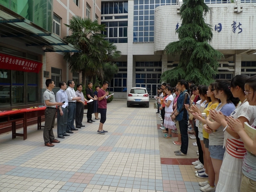 5月14日下午,学生处在沣惠校区希望广场隆重举行我院第九届5.25大学生心理健康月启动仪式。本次活动以“珍爱生命,阳光生活”为主题,旨在提倡每一位同学要学会珍爱生命,把握青春年华,积极乐观面对生活,为自己创造更好的成才之路,并由珍爱自己扩展到关爱他人,关爱社会。学生处处长孙巨峰、各系部书记、学生管理室主任、辅导员、心灵驿站全体成员及学生代表参加仪式。学生处学生教育科科长王永锋主持仪式。