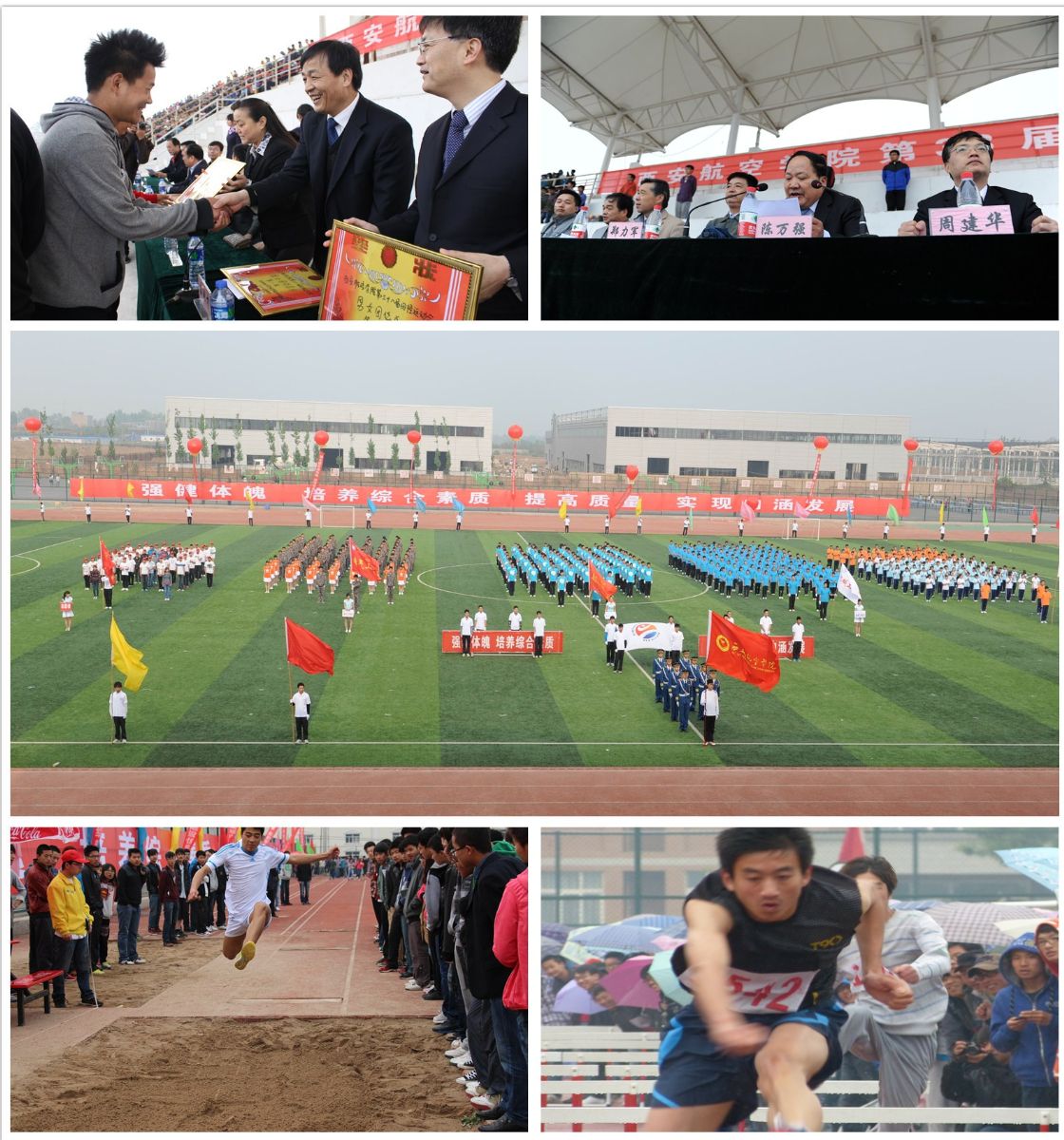 4月19至20日,我院第38届田径运动会分别在阎良和沣惠两个校区同时进行。院领导分别出席两校区的开幕式与闭幕式。党委书记苗润才、院长陈万强分别在两校区致开幕词和闭幕词。
