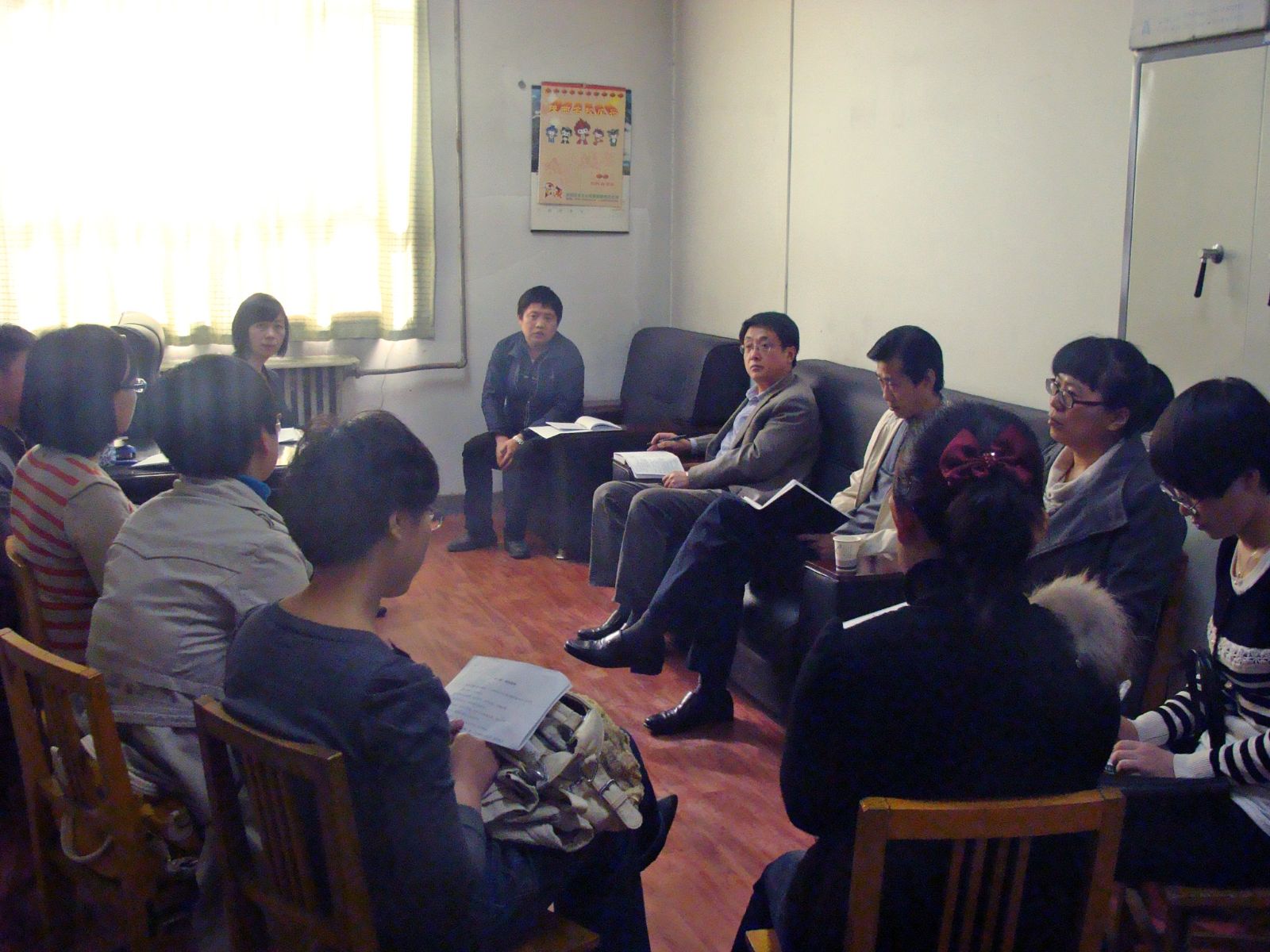 金文对曹庆年的调研表示欢迎,介绍了动力系的专业设置与建设规划、师资队伍、教学、课程建设、实验室、实践基地建设等方面的情况。雒新峰对提高教师实践能力和实践基地的建设进行了补充说明。教研室主任吴奇、杜芳莉介绍了相关情况,对实验设备的更新完善提出了建议。教师代表也踊跃发言,针对实验室设备更新、多媒体教室使用、青年教师培养、技能鉴定工作等内容发表了自己的看法、意见和建议。