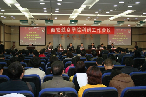 3月22日上午,我院首届科研工作会议在图书馆五楼学术报告厅举行。省教育厅副厅长郭立宏、省教育厅科技处处长甘世平、中航飞机强度研究所副所长王世廉、中航工业庆安集团公司党委副书记庞学礼、中航飞机强度研究所科技部部长杜养信应邀出席。学院党委书记苗润才、院长陈万强、党委副书记周建华、副院长郑力军、张同怀、曹庆年,及全体中干、正高职称人员、教研室主任、专业带头人、骨干教师及教师代表等二百余人参加了会议。